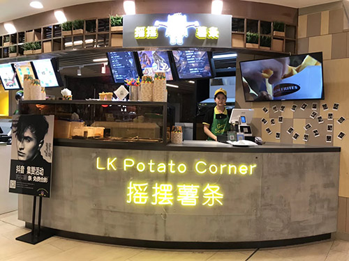LK Potato Corner于美國(guó)、澳洲、泰國(guó)、印尼、巴拿馬等共開900多家分店,中國(guó)的第一家門店選址在杭州湖濱銀泰百貨,該店吸排煙設(shè)備選用的就是多環(huán)牌無(wú)管式油煙空氣凈化機(jī),而且后續(xù)各個(gè)加盟連鎖店將標(biāo)配”多環(huán)“無(wú)煙管油煙空氣凈化機(jī)。