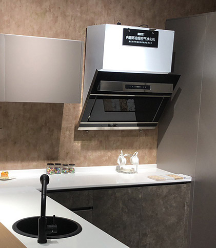【無煙管內循環吸油煙機】:循環式吸油煙機采用特殊的油脂分離器和納米光觸媒與高效復合活性炭等高科技材料組合的凈化方式,有效去除房間內的有害氣體和異味,殺滅細菌和病毒。